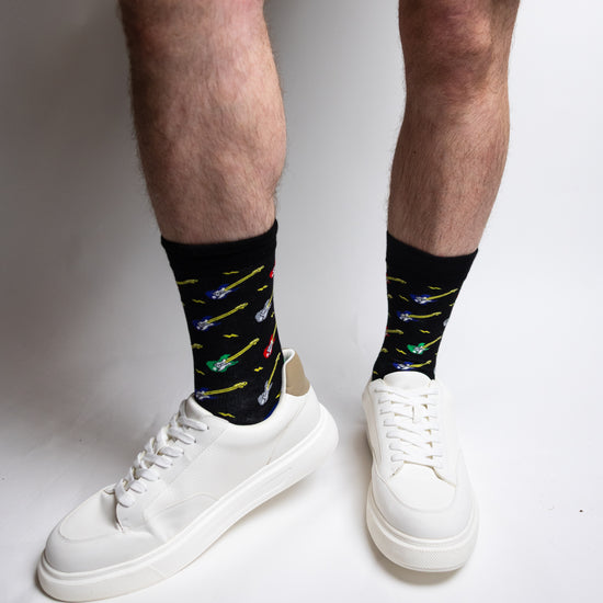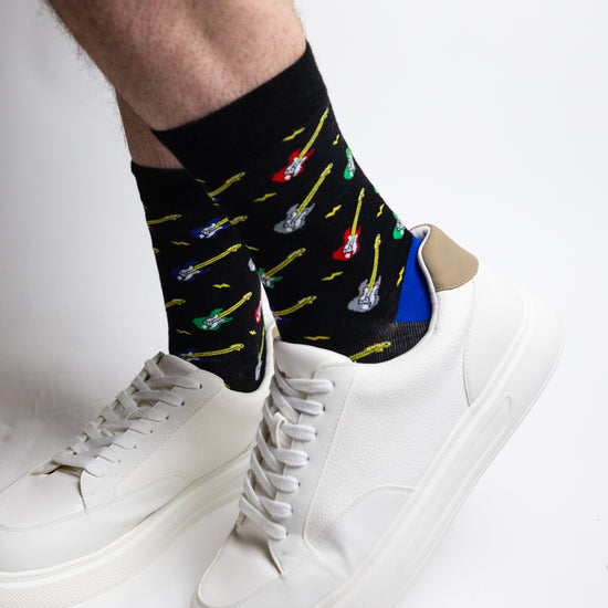 Turn it up to eleven! Our Hard Rockin’ socks are an absolute must for any music lover, featuring a high-voltage pattern of colourful electric guitars that scream style louder than a Marshall amp. Whether you’re headlining your day or jamming through the commute, these socks bring the noise—in all the right ways.