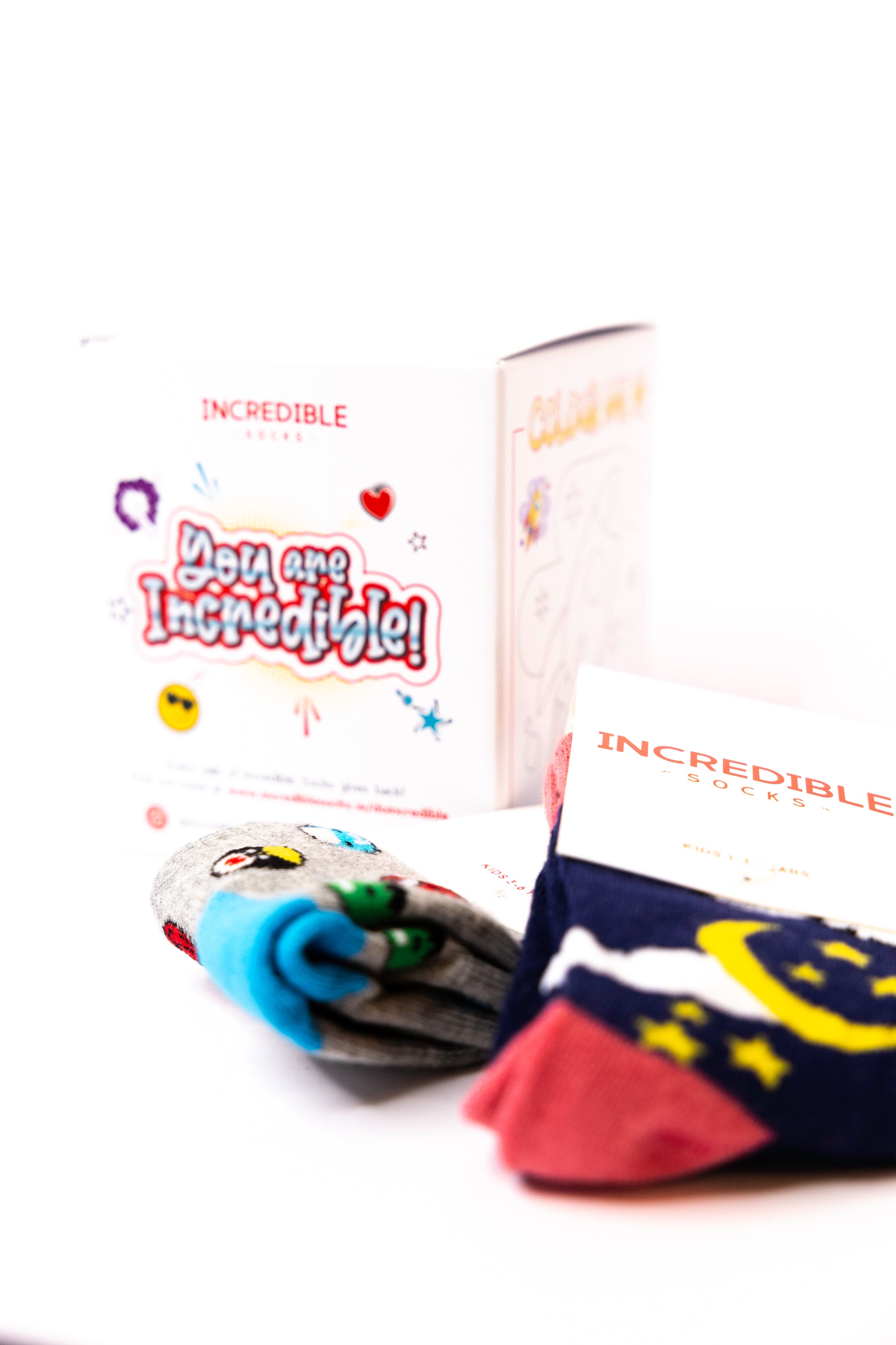 Ignite the wonder of childhood with our incredible sock gift box. When you buy three or four pairs of our magical kids socks add this fun interactive gift box made especially for fun lovin' kids for FREE. The box comes equipped with games and activities like colouring and a superhero quiz. Whats more this box doubles as a great place to store lego, savings, and crayons.