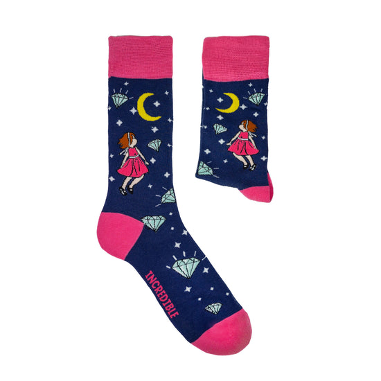 Join Lucy as she dances across the sky, and together, let's embark on a journey filled with wonder, discovery, and a touch of magic. With "Lucy in the Sky with Diamonds" from Incredible Socks, let every step be a celebration of life's greatest adventures!